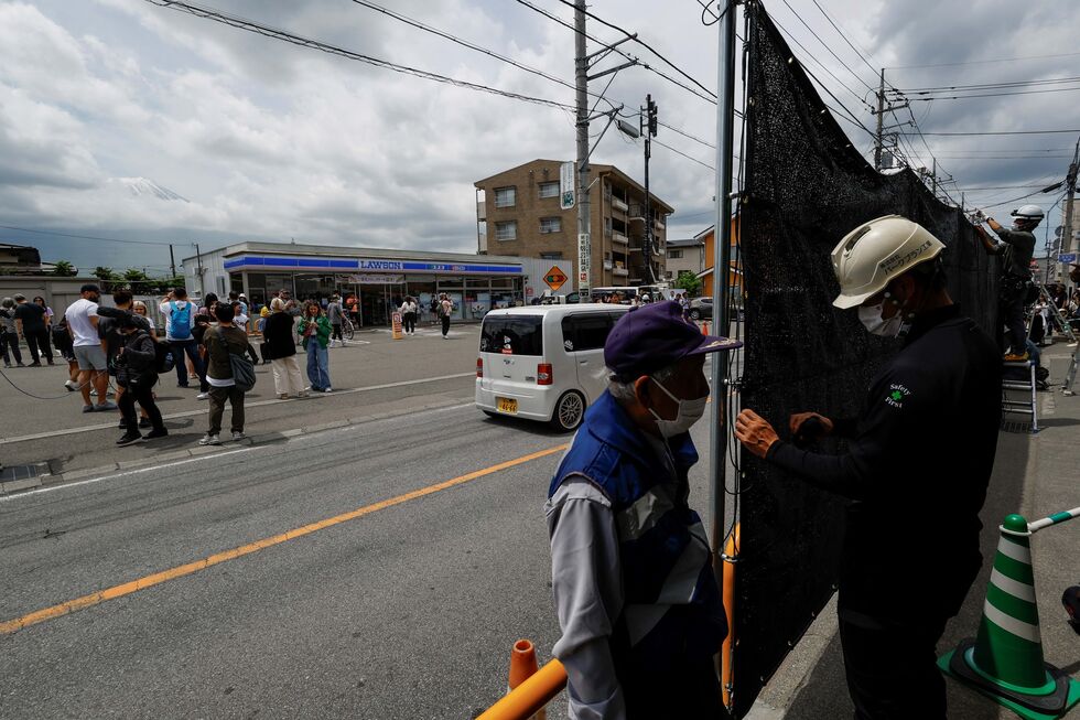 Uma cortina preta de 2,5 metros de altura e 20 metros de largura irá cobrir a vista de onde parece que a montanha mais emblemática do Japão se eleva sobre uma loja de conveniência em Fujikawaguchiko, localidade situada na província de Yamanashi.